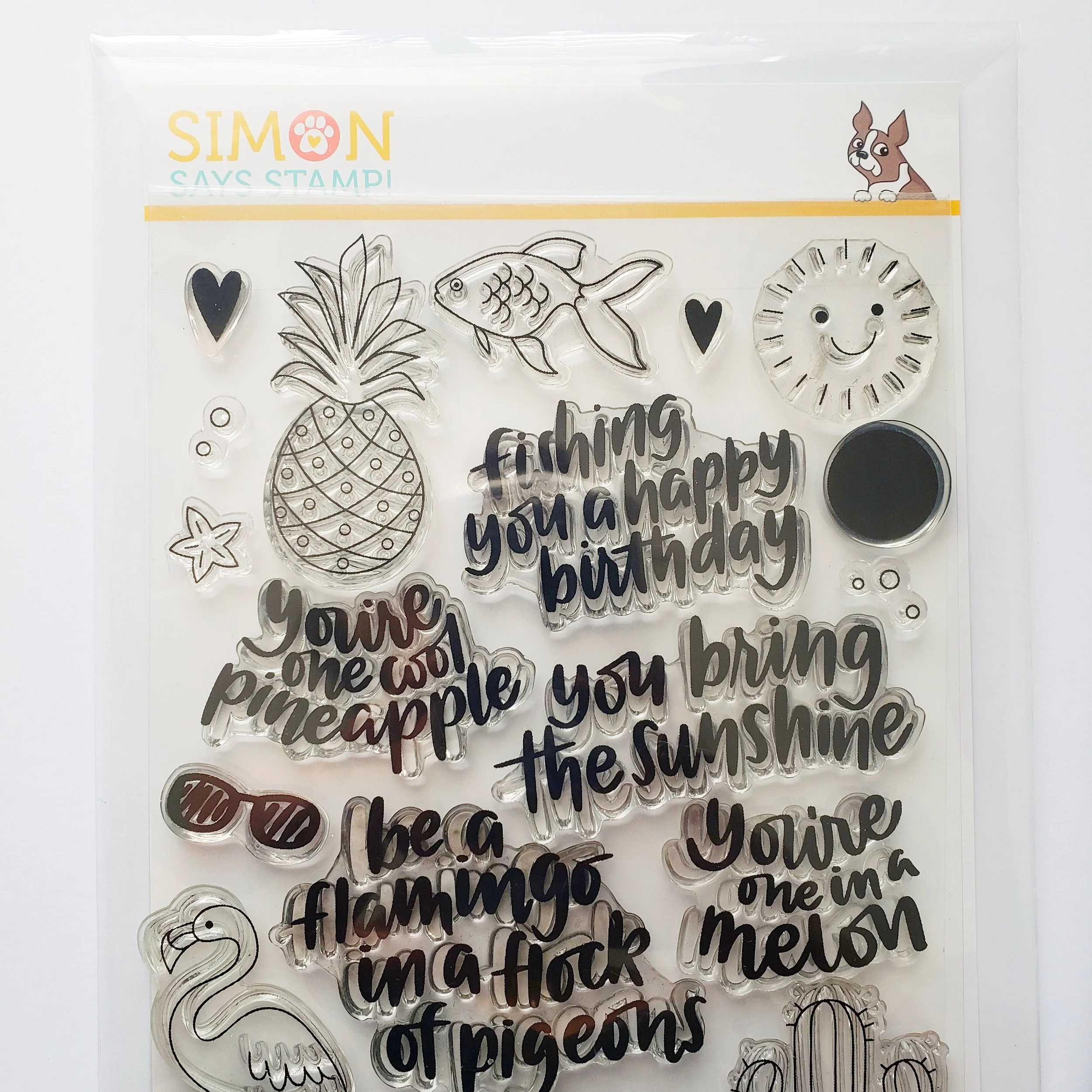 To begin with, I am featuring the Exclusive One Cool Pineapple stamp set included in the July card kit by Simon Says Stamp. Although, you can purchase the stamp set without ordering the whole kit. I thought, this was a good addition to my stamp collection. Because, I loved those unique and fun sentiments and images.