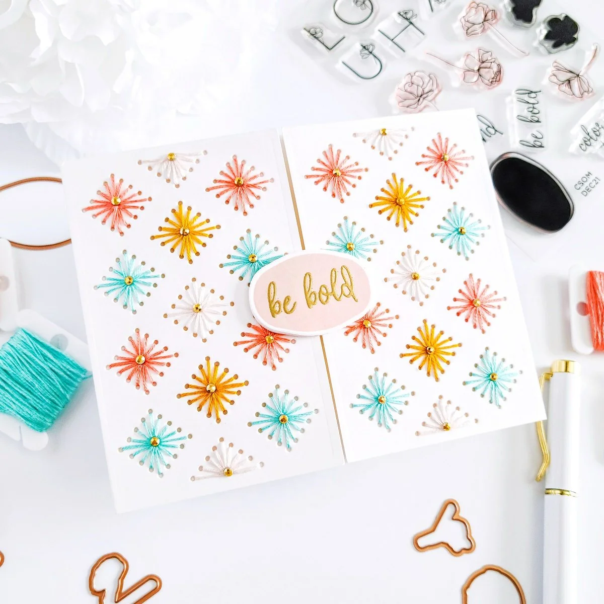 With that being said friends, I hope you’ve enjoyed reading the step-by-step for how I’ve made this delicate set of “Floral & Hand Stitched” inspiration cards showcasing “Colors Outside the Lines” DEC-2021 Clear Stamp of the Month Club Kit by Spellbinders