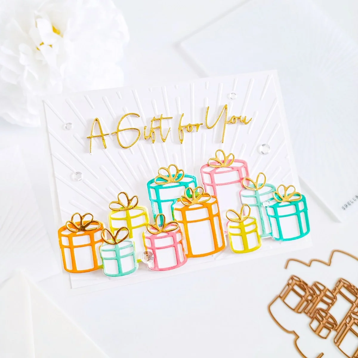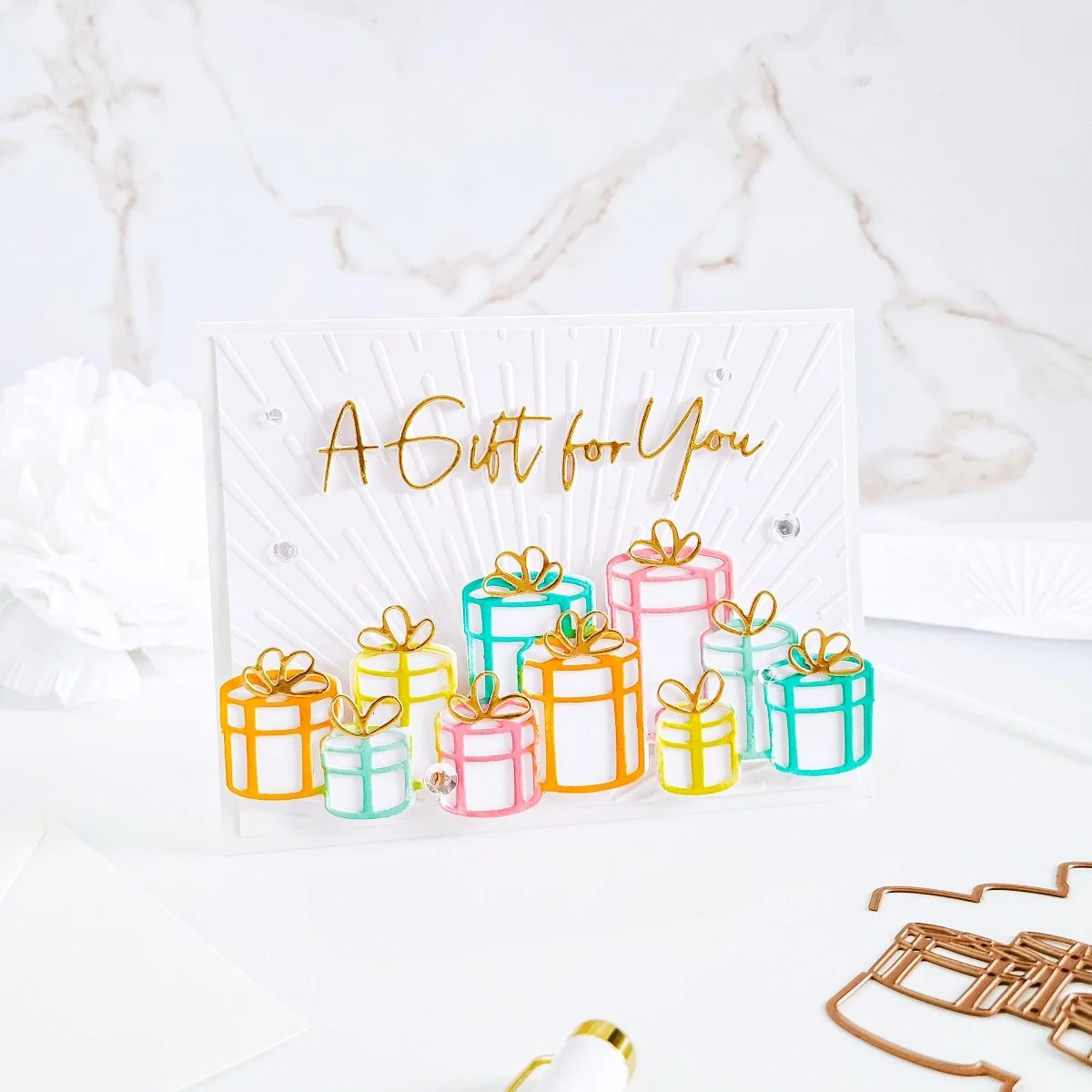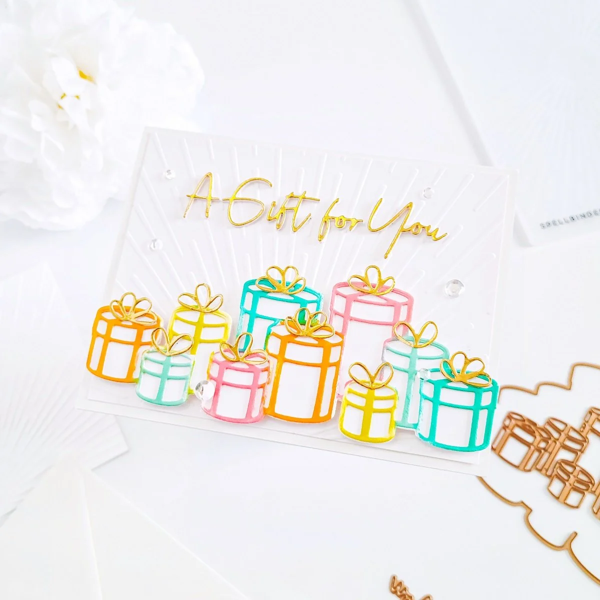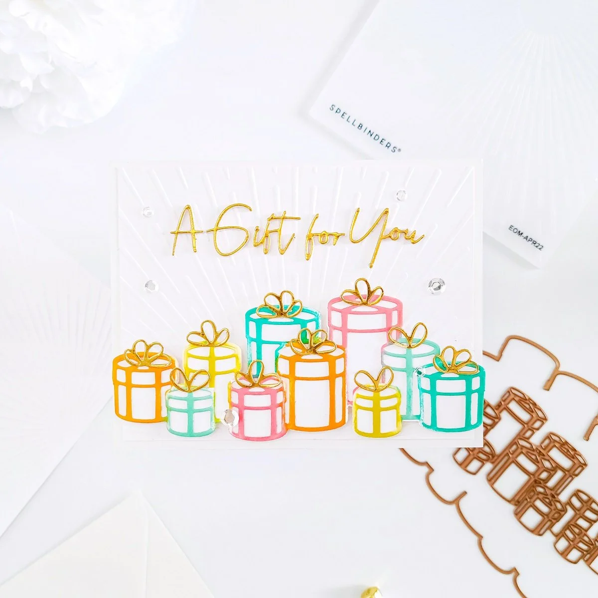 Happy Thursday, Friends! On today’s blog, I’d like to share with you a “Gift Greetings” inspiration card made without any specific occasion showcasing the latest: April-2022 “Gift Borders & Sentiments” Small Die of the Month Club Kit by Spellbinders. Along with it, I’ve also used April-2022 “Radiant Burst” Embossing Folder of the Month Club to add texture to the card background. So, without further ado let’s jump right into the step-by-step on how I made it ↓