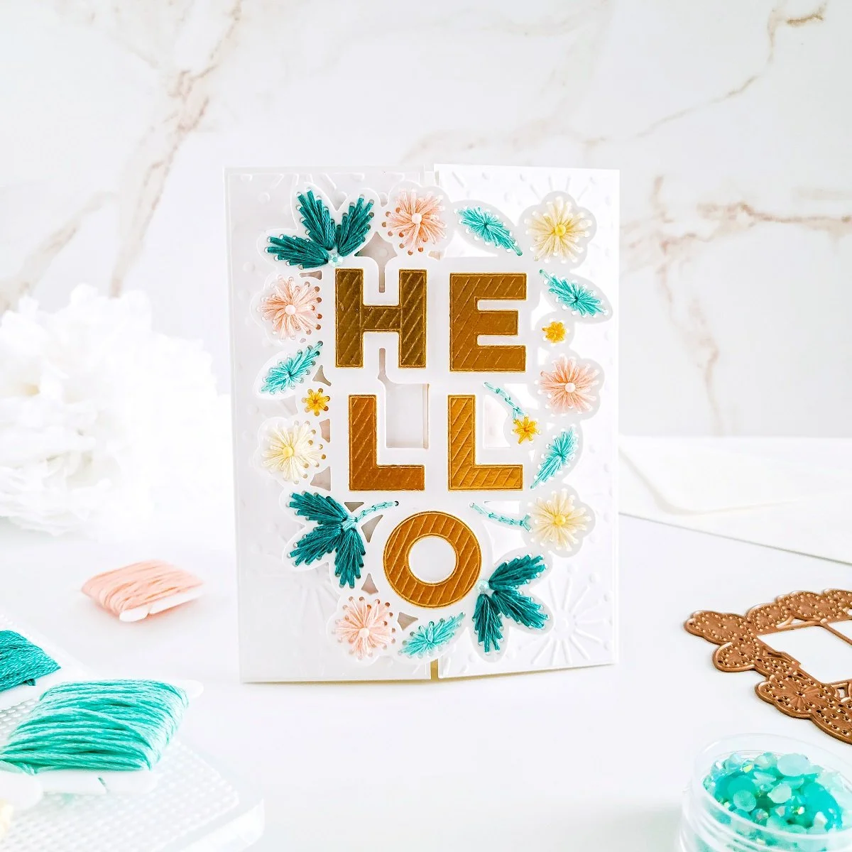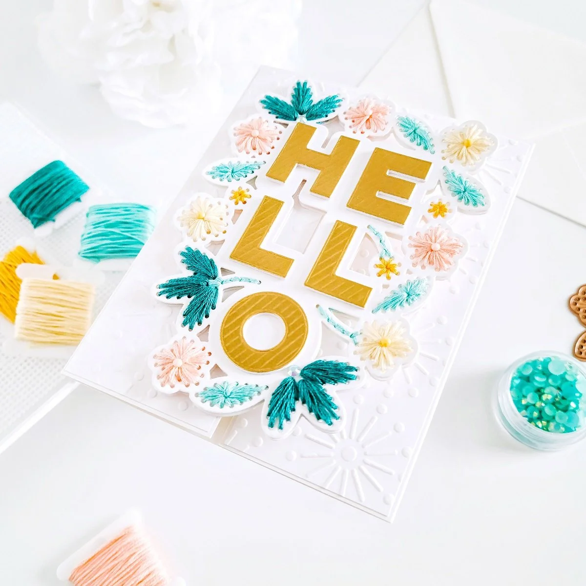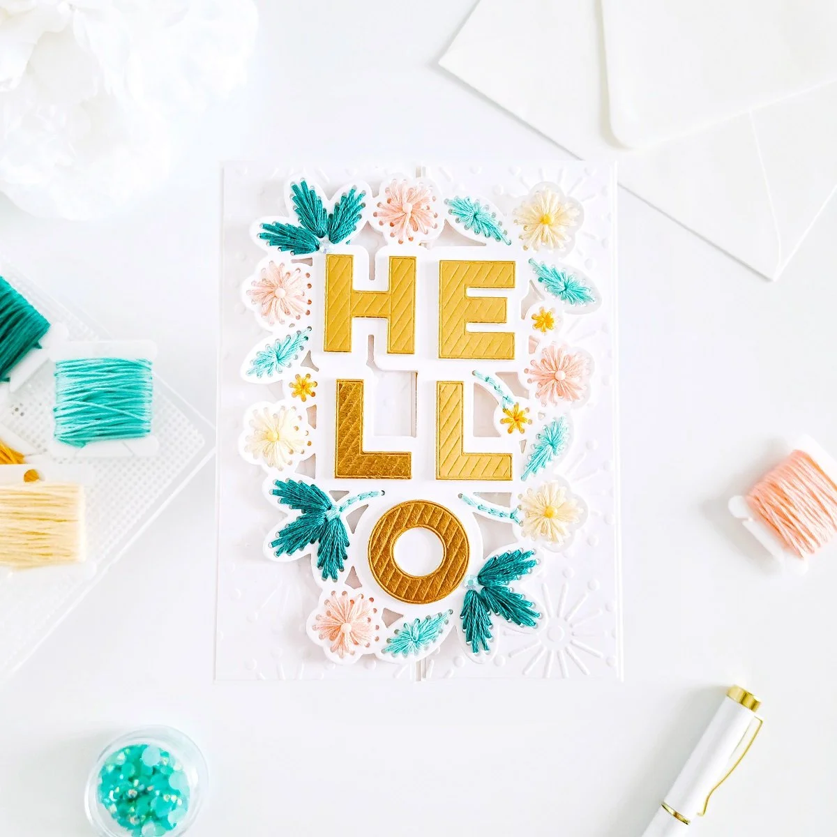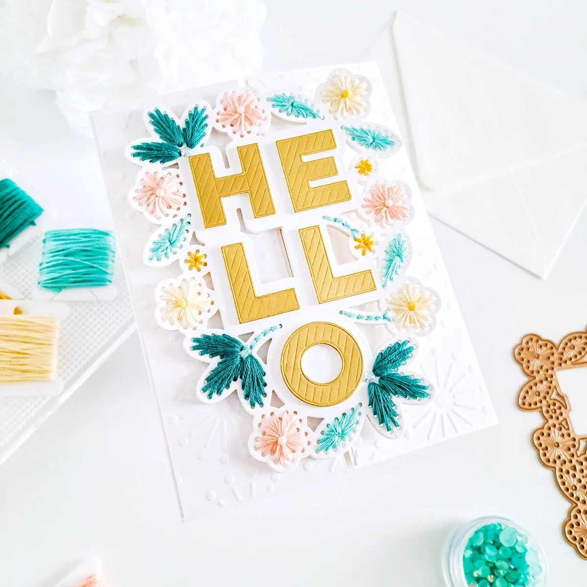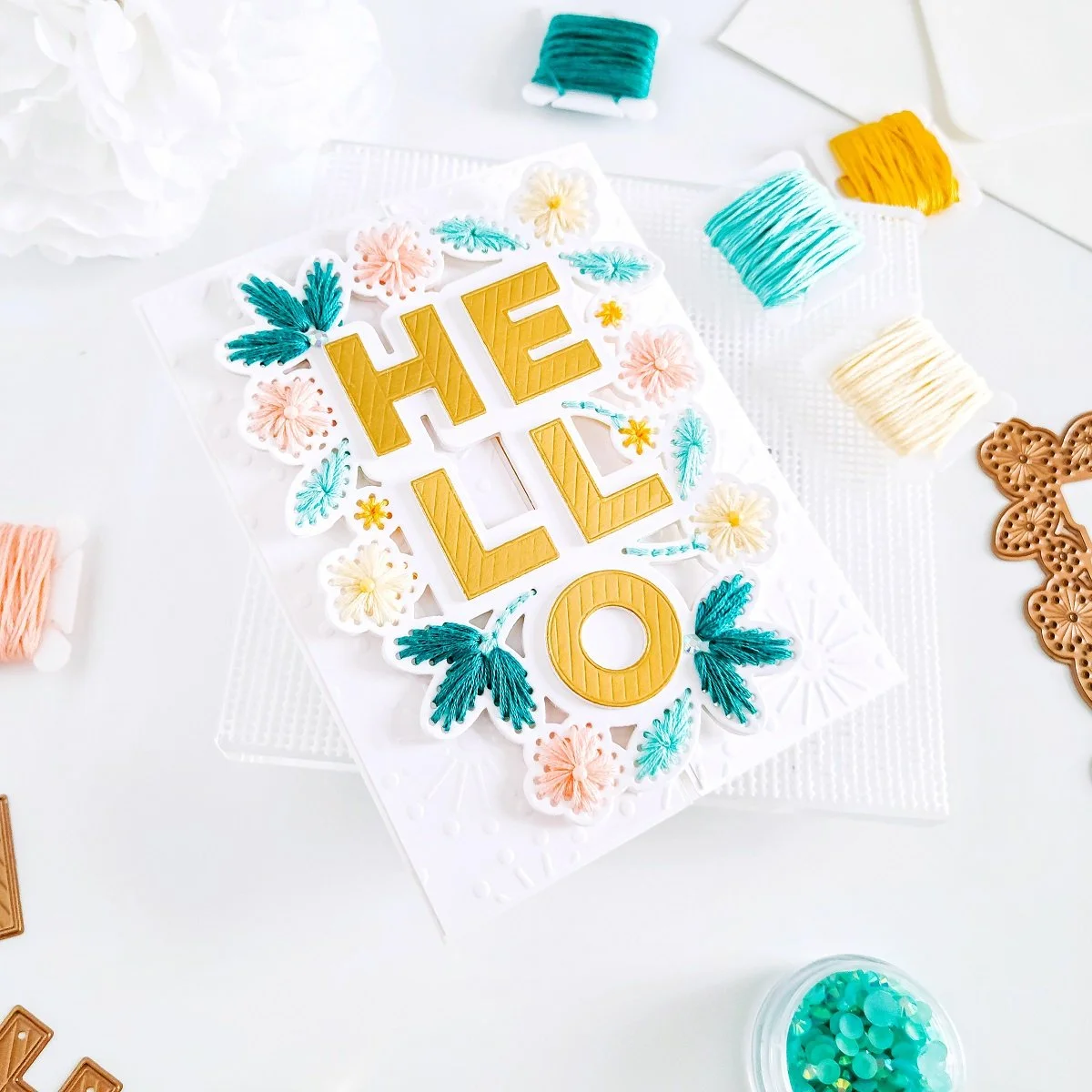 Happy Thursday, Friends! On today’s blog, I’d like to share with you an inspiration “Hello” card with a hand-stitching look made showcasing a combination of the latest: MAY-2022 “Stitched Hello” Small Die of the Month Club Kit + MAY-2022 “Faux Stitch” Embossing Folder of the Month Club by Spellbinders. So, without further ado let’s jump right into the step-by-step on how I made it ↓