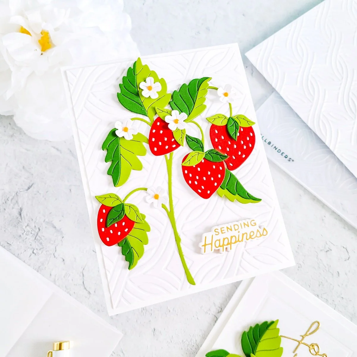 Thus, once I had all die-cutting pieces, I proceeded to put the strawberry branch together and then, I put aside to add texture to a large piece of White cardstock. So, to do that, I used this month’s Embossing Folder of the Month Club. Having that being said, right after that I had finished adding the texture to it, I went ahead to trim down a smaller front card panel and then, I used the debossed side of it to make this example.