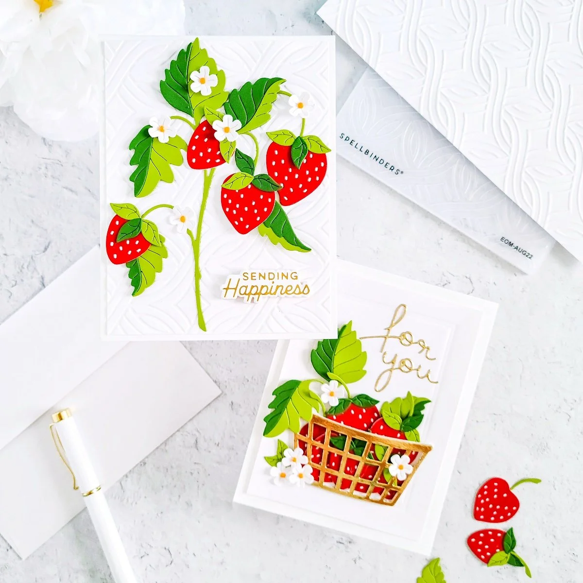 Happy Friday, Friends! On today’s blog, I’d like to share with you clean and simple inspiration card set made with a yummy “Summery & Strawberry” look showcasing: AUG-2022 "Strawberry Patch" Large Die of the Month Club and "Intertwined Lattice" Embossing Folder of the Month Club by Spellbinders. So, without further ado let’s jump right into the step-by-step on how I made them ↓