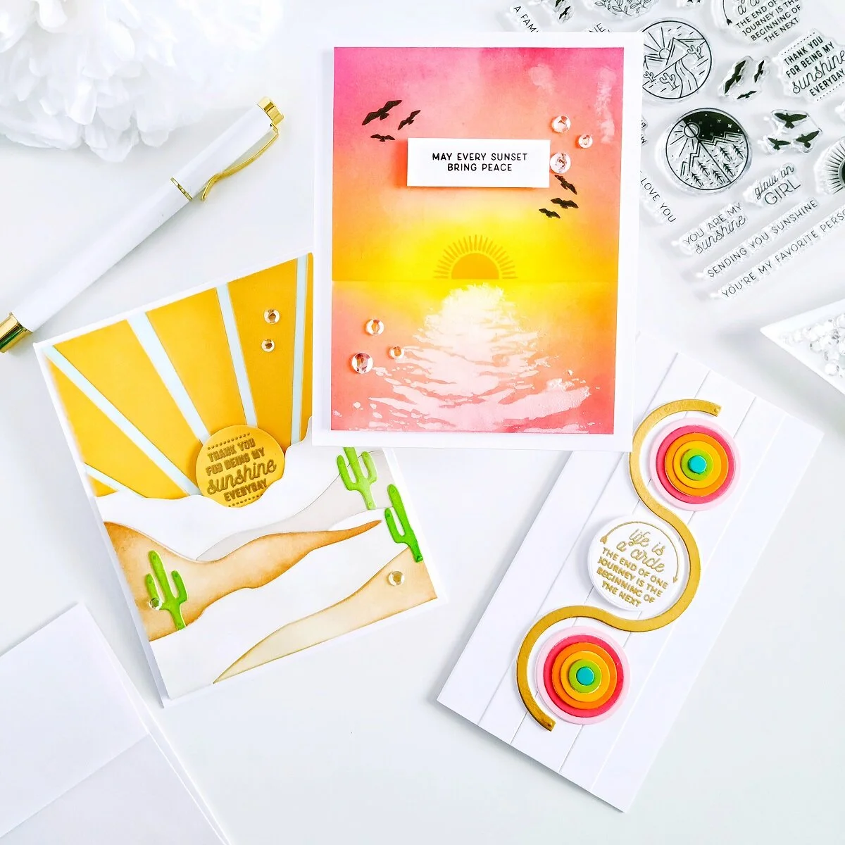 Happy Tuesday, Friends! On today’s blog, I’d like to share with you this set of “Summer” inspiration cards made using “Circle of Sunshine” JUN-2021 Clear Stamp of the Month Club Kit which pairs perfectly with this month’s Small Die of the Month Club and Large Die of the Month Club by Spellbinders. So, without further ado let’s jump right into the step by step on how I made them ↓
