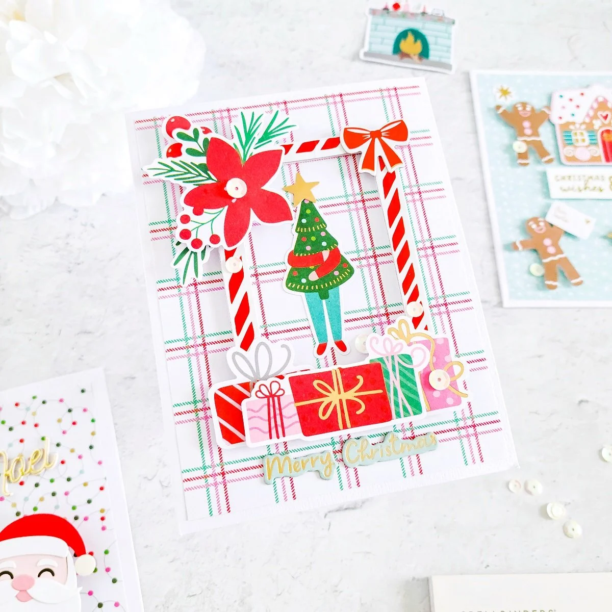 Therefore, for the first example as per usual with every card making kit club, I started by using the die set included in the kit. Thus, I went ahead to use the dies along with the cardstock hues also included in the kit to die cut each piece for the Santa and Christmas Tree using the Platinum 6 Die Cutting and Embossing Machine for the die-cutting process.