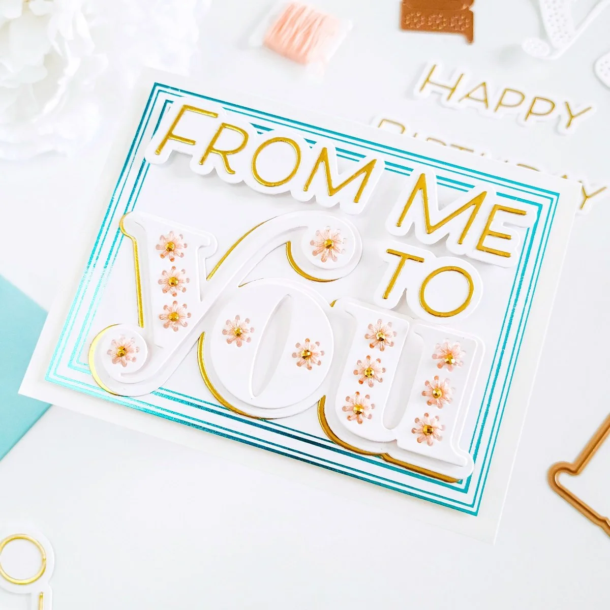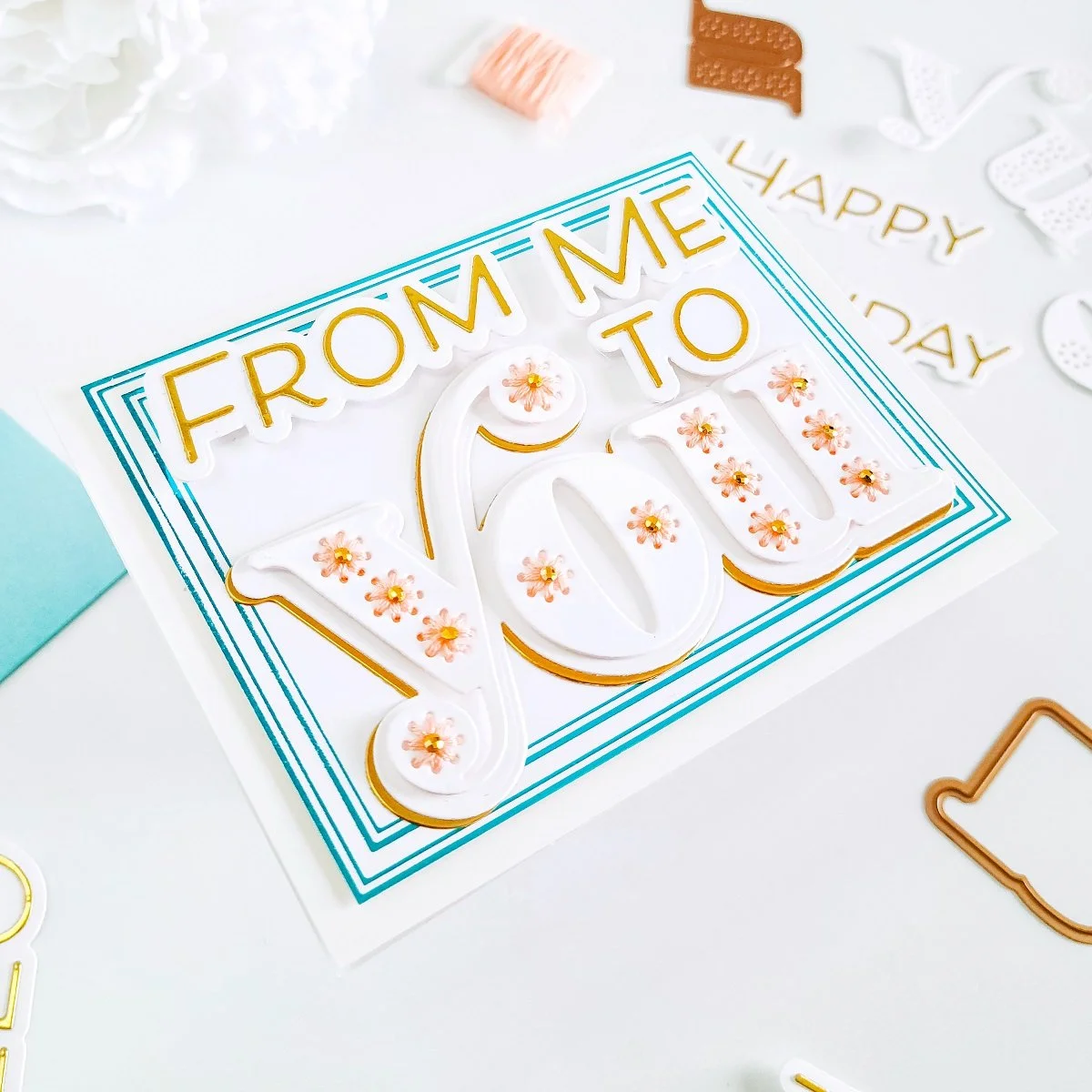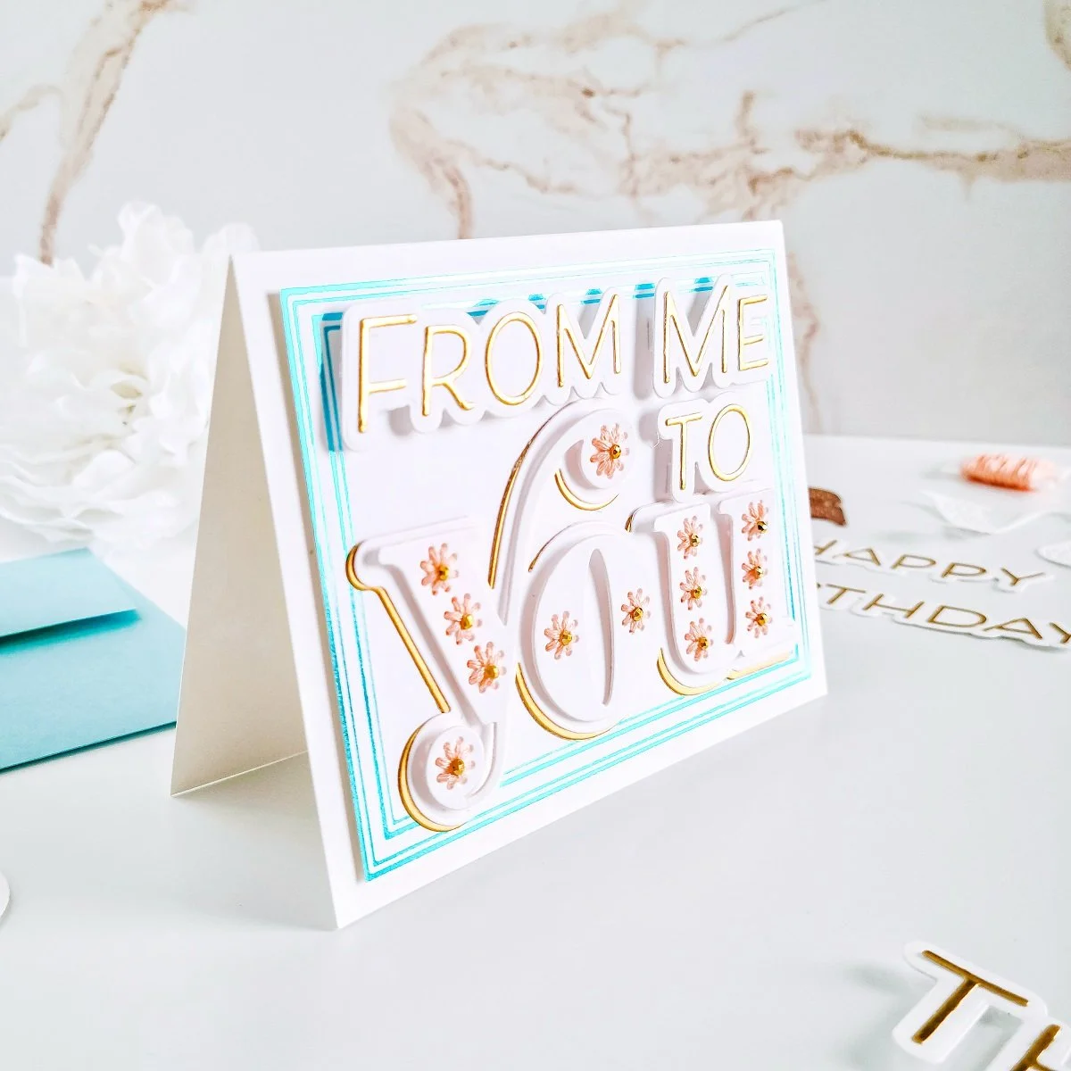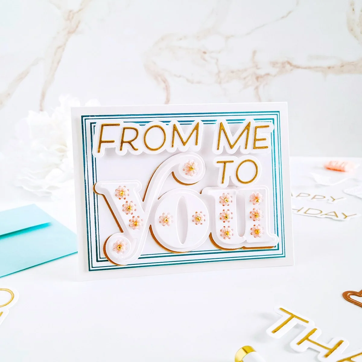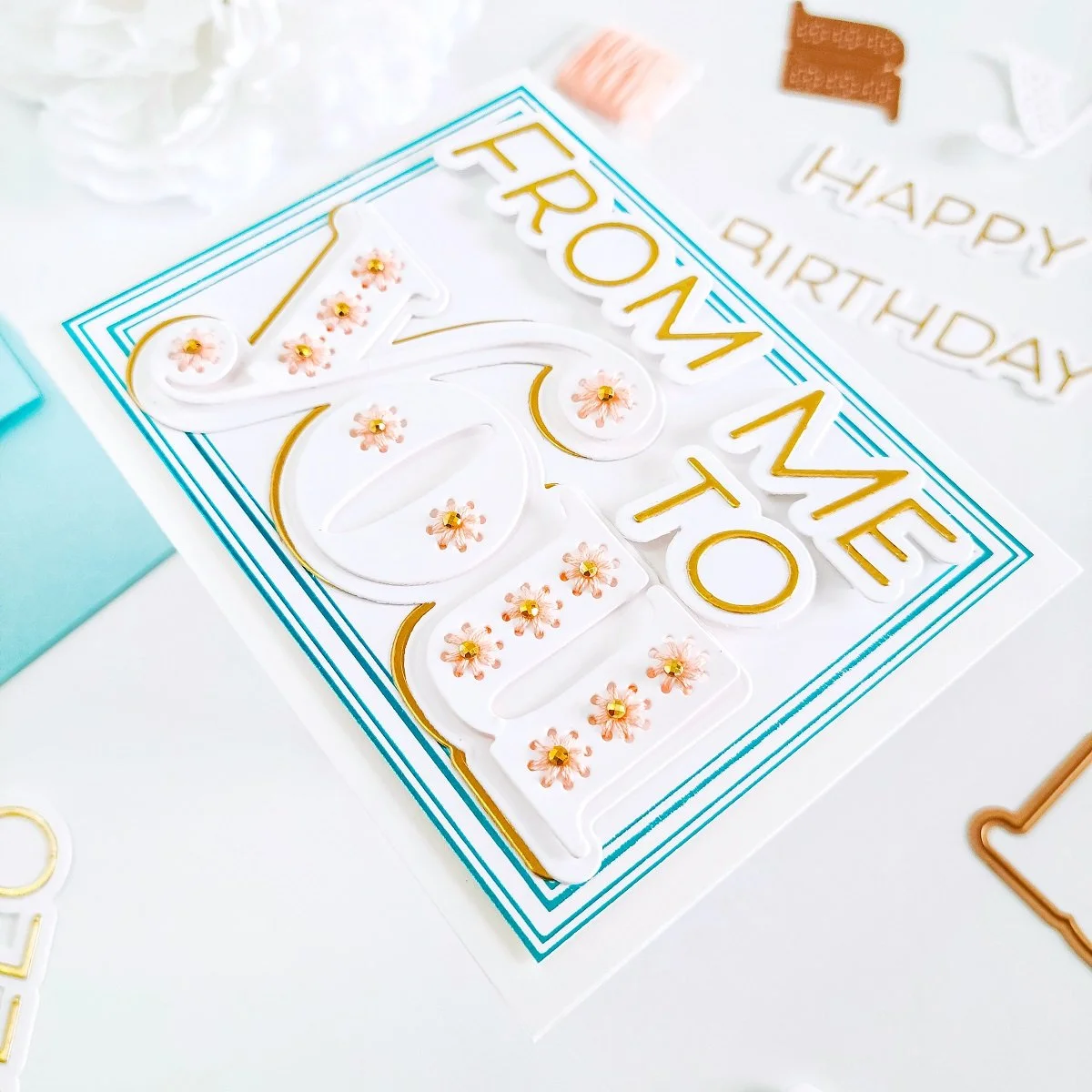 Having that said, as soon as I’ve had finished die-cutting the white decorative letters, I went ahead to cut out the shadow die-cutting pieces for the die-cutting sentiments and then I also got cut out the top lettering for the sentiments from gold cardstock.