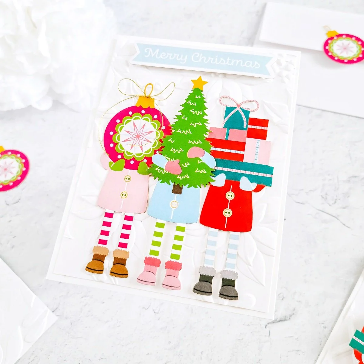 Happy Friday, Friends! On today’s blog, I’d like to share with you a fun set of holiday inspiration cards made with a “Fun & Interactive” effect showcasing the latest Oh What Fun! Collection by Spellbinders. Which includes: Christmas Delivery Printed Die Cuts and Gnomie Christmas Dance Printed Die Cuts however, for today’s cards, I will be using only one of the sets along with Dimensional Diamonds 3D Embossing Folder and Scenic Poinsettias 3D Embossing Folder. So, without further ado let’s jump right in to the step-by-step for how I made them ↓